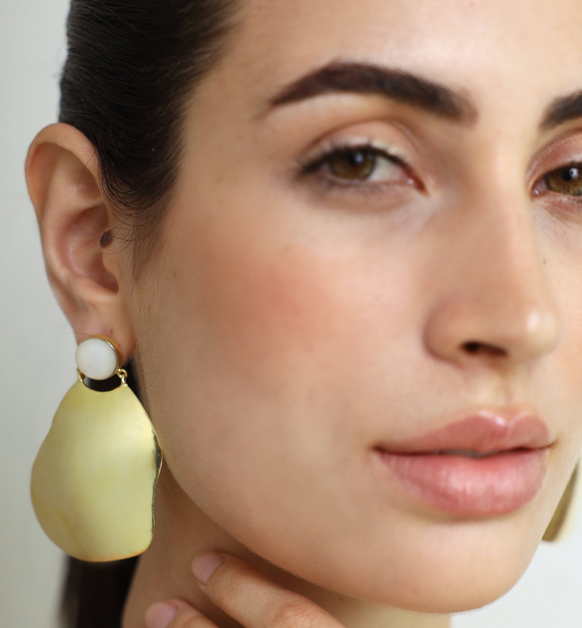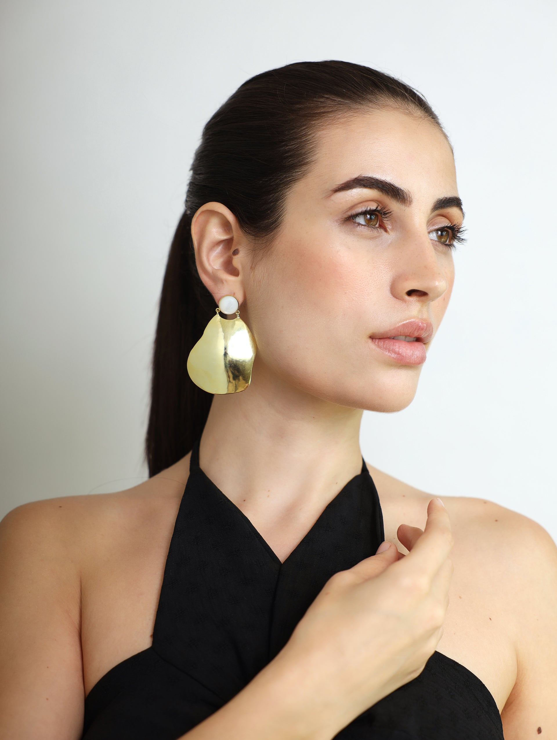 Embrace the serene elegance of the Dew earrings, where modern design meets natural beauty. These exquisite pieces feature a lustrous, organic-shaped gold drop adorned with a delicate pearl, reminiscent of morning dew resting on a leaf. Perfect for both everyday wear and special occasions, the Dew earrings add a touch of sophistication and grace to any ensemble