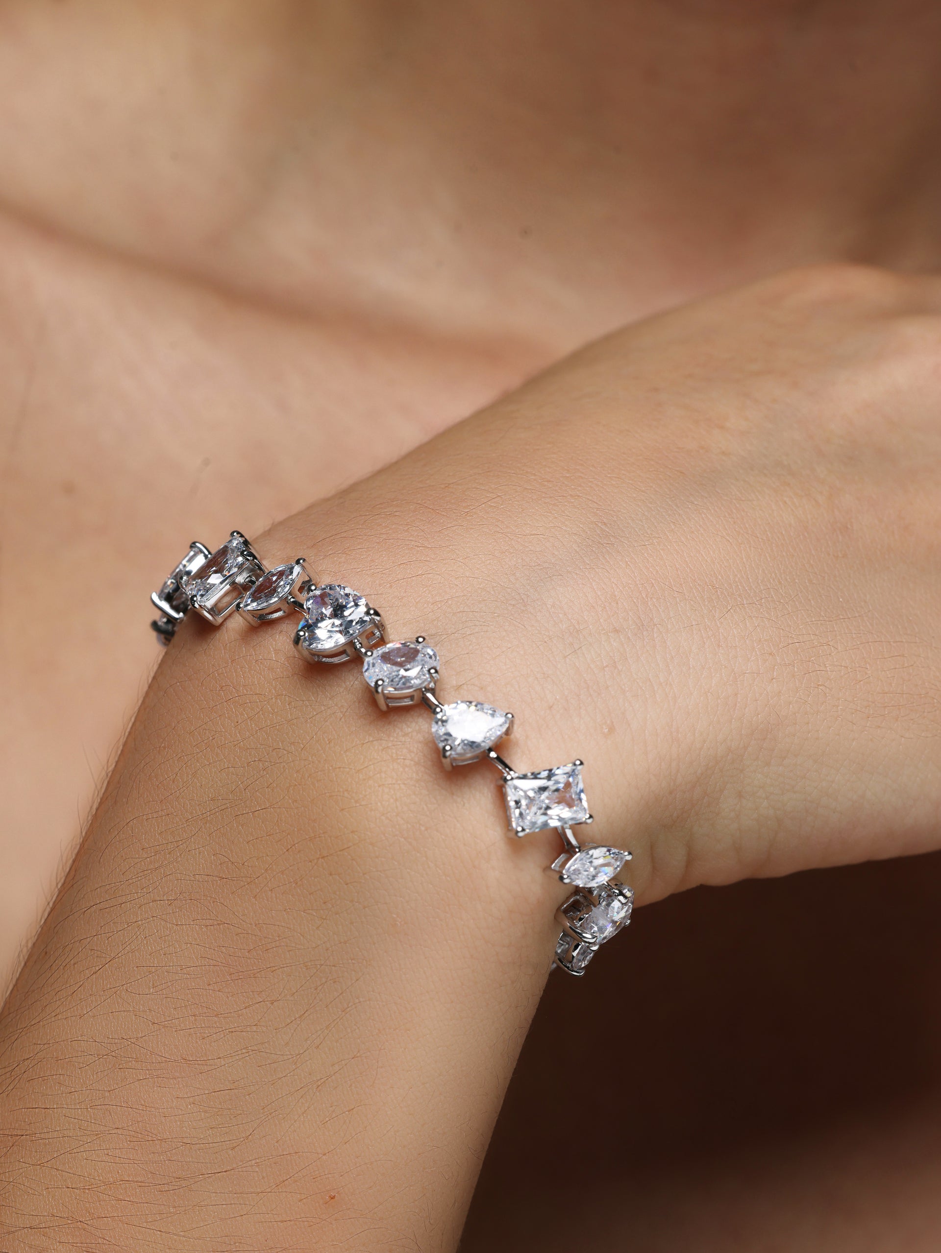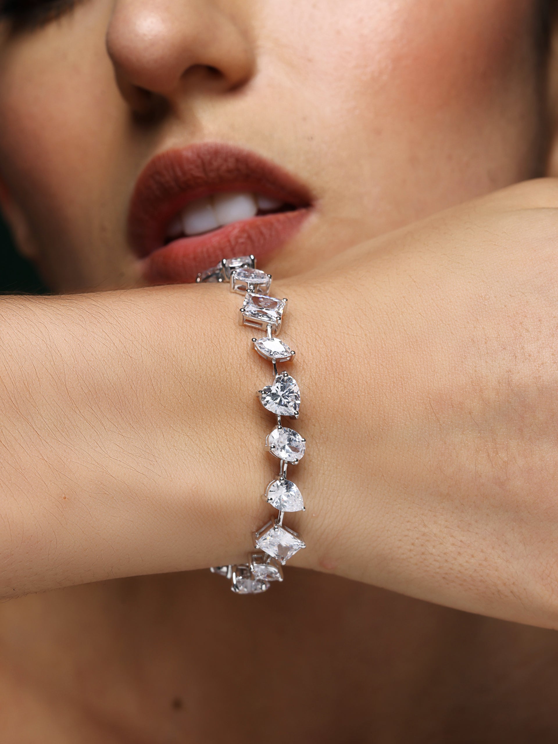 Dimensions : Stone Size: Heart- 8mm, Baguette- 8x6mm, Marquese- 8x6m, Oval- 8x6mm & Length- 6.75inches