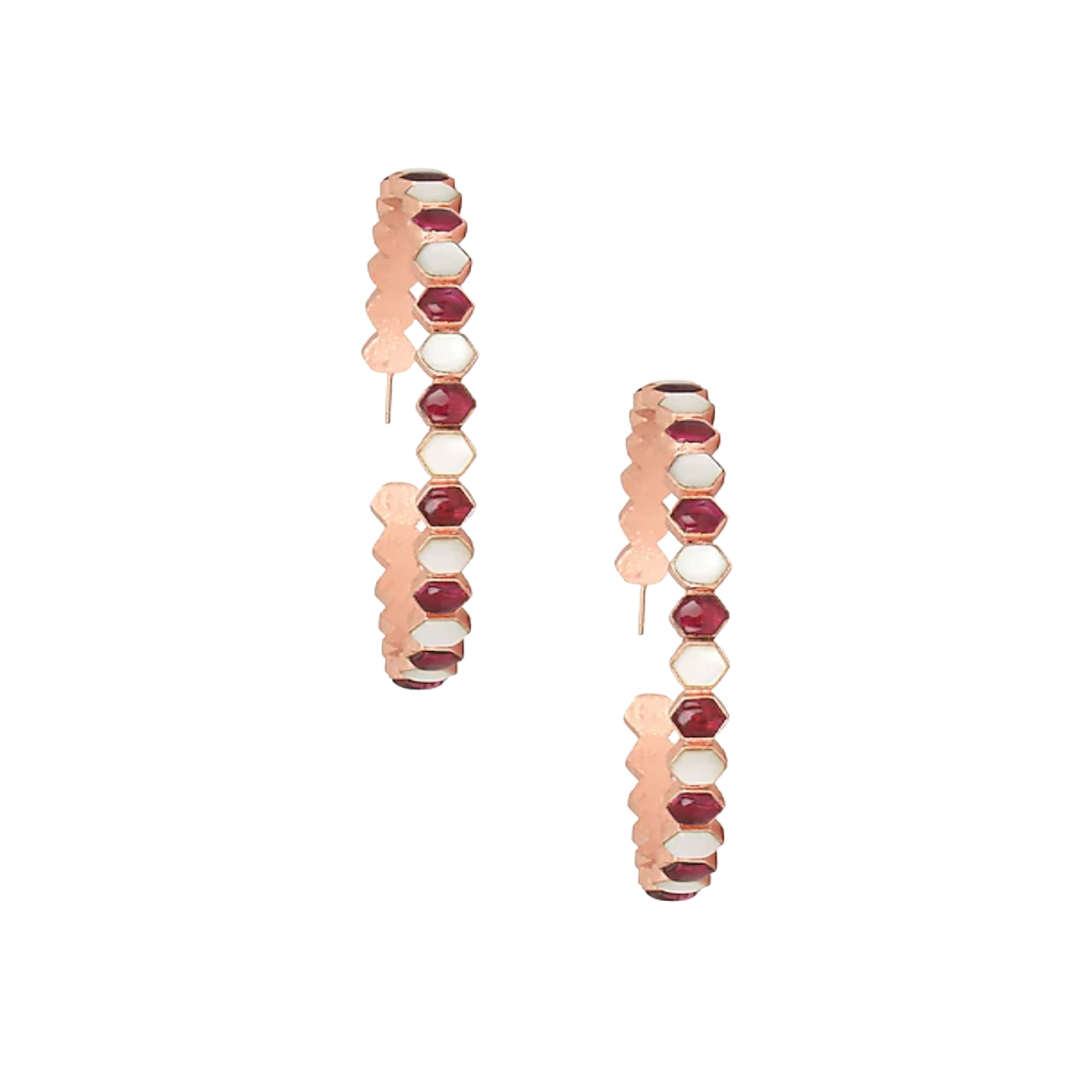 Rose Gold Plated Earring With Hydro pink Quartz and White Mother of Pearl Semiprecious Stone. Handmade In India