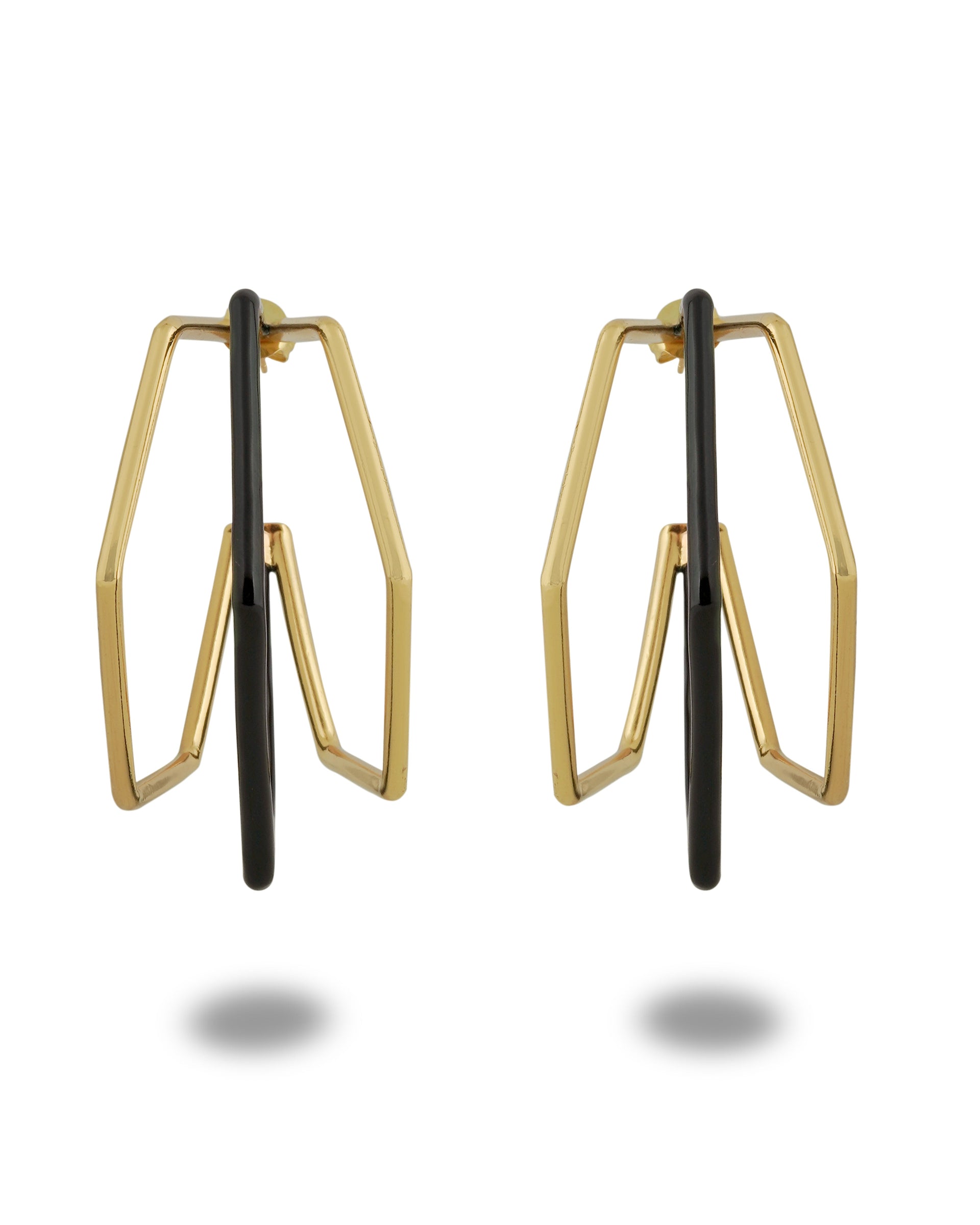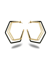 Elevate your style with these striking geometric hoop earrings, where modern elegance meets bold design. Featuring interlocking hexagonal shapes in rich gold and black, these earrings make a statement with their unique structure and vibrant contrast. Perfect for both daytime charm and evening sophistication, they add a touch of contemporary luxury to any look. Lightweight yet eye-catching, they’re the ultimate accessory for the fashion-forward woman.
