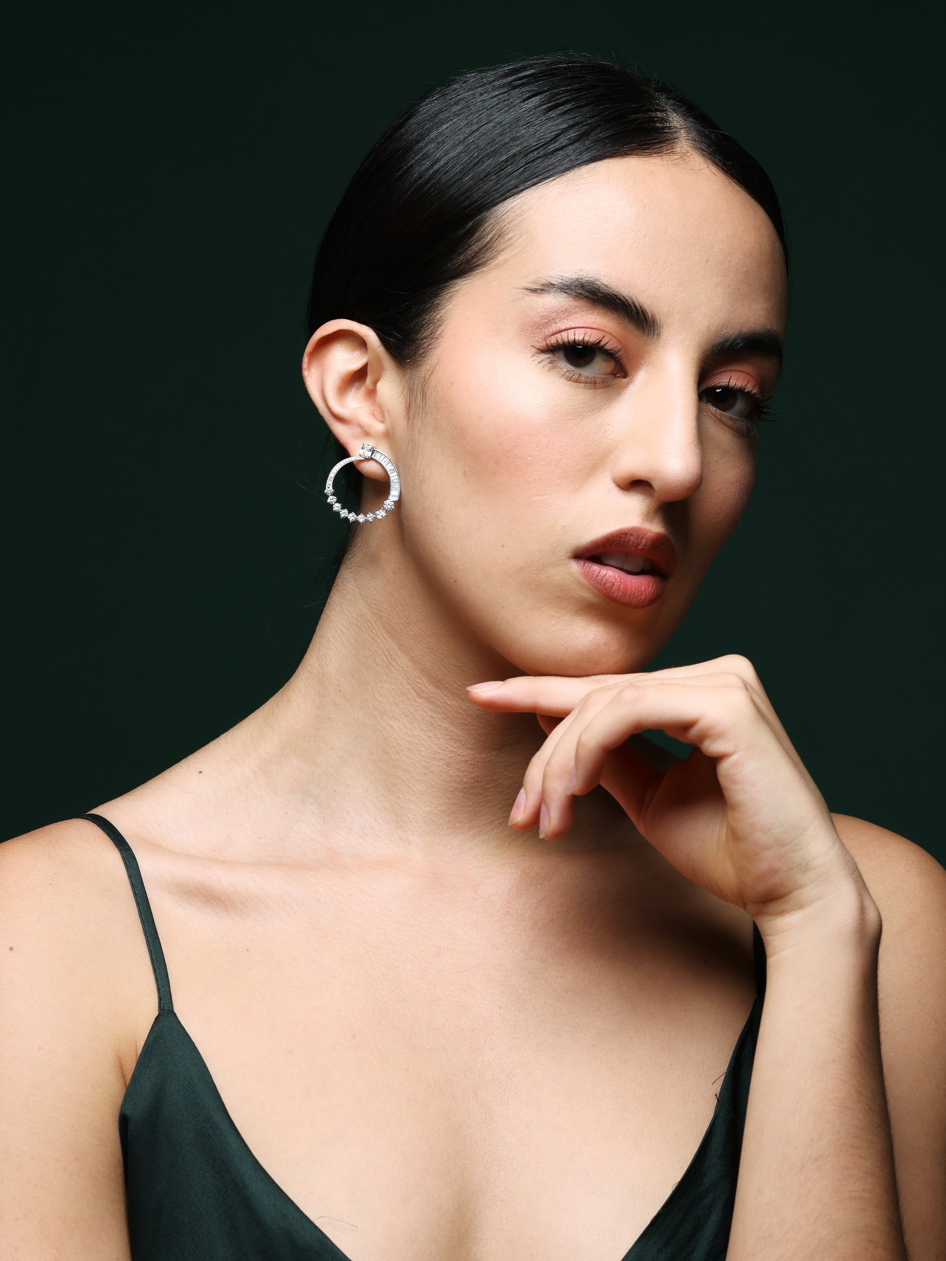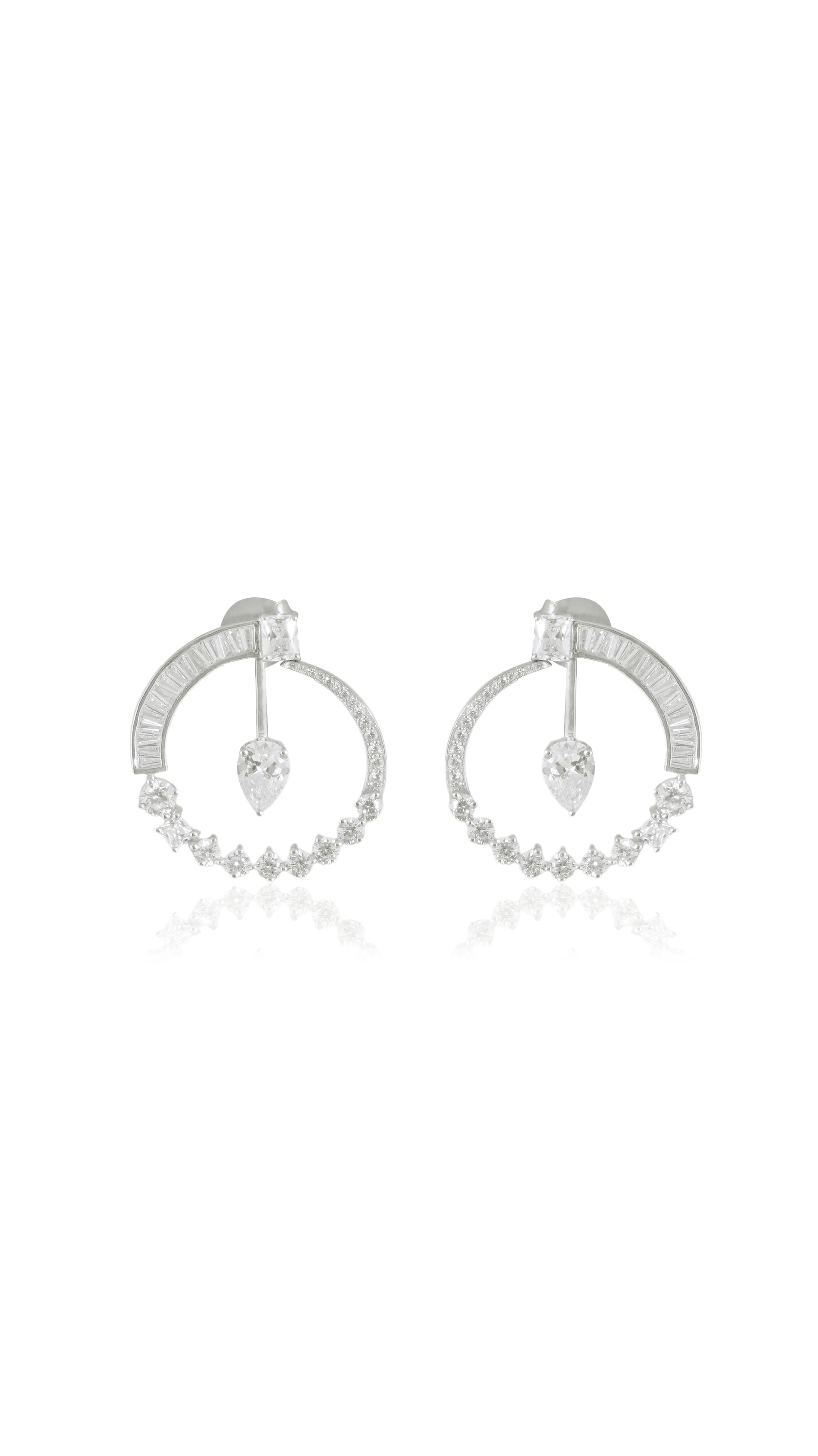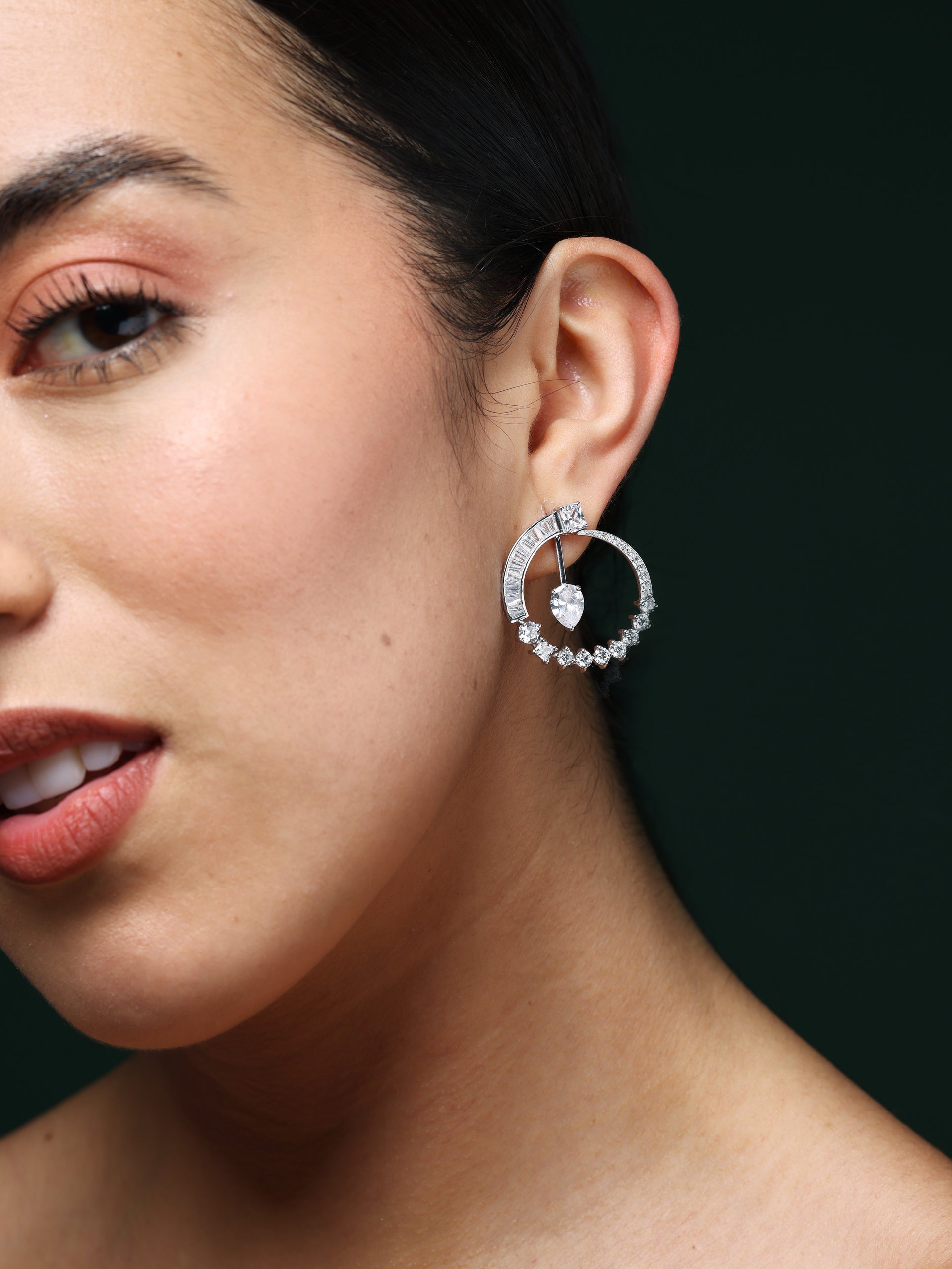 With their sleek, contemporary design, our CZ Orbit Hoops is perfect for both special occasions and everyday elegance. Handcrafted for comfort and durability, each piece offers a refined touch of luxury that effortlessly complements any look. It can be worn with or without the pear shaped dangler.