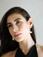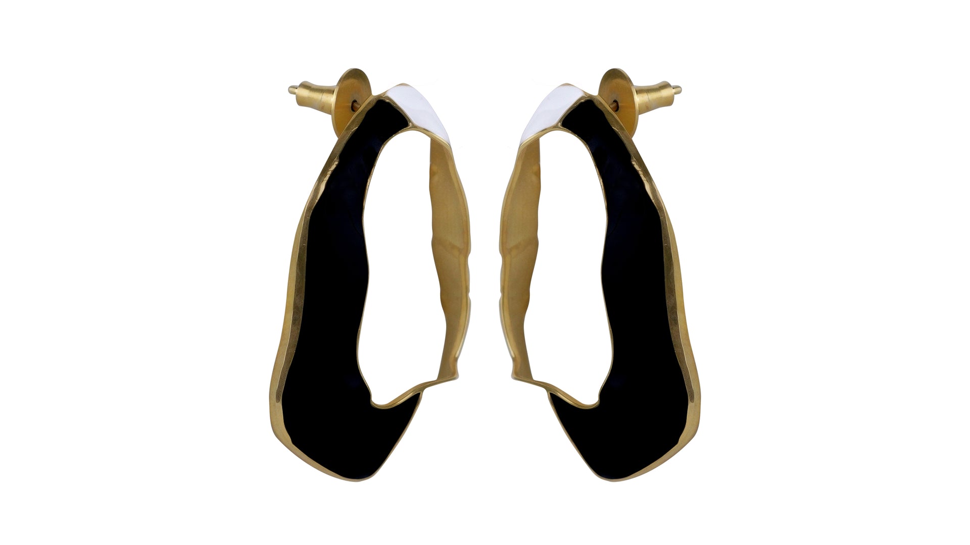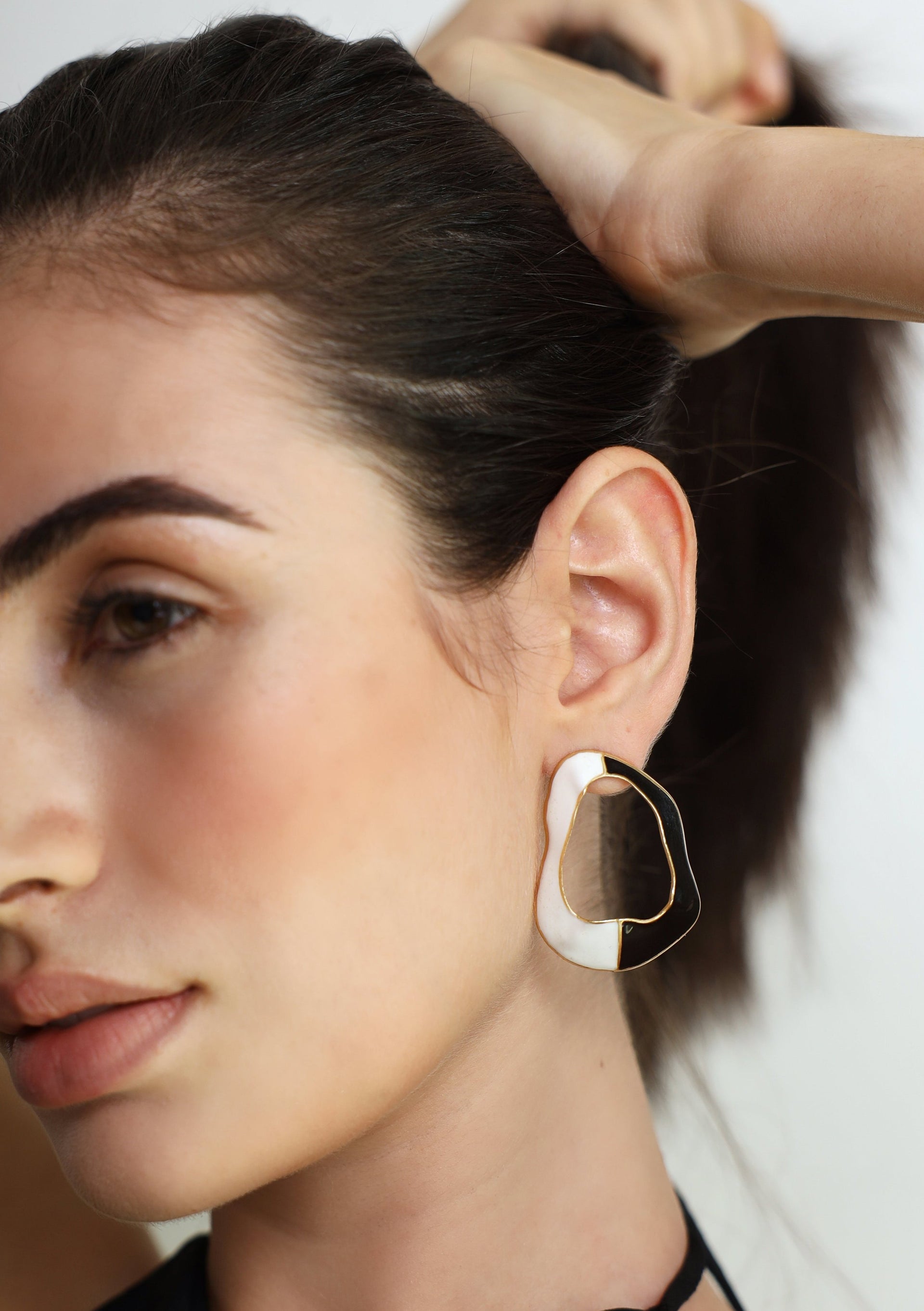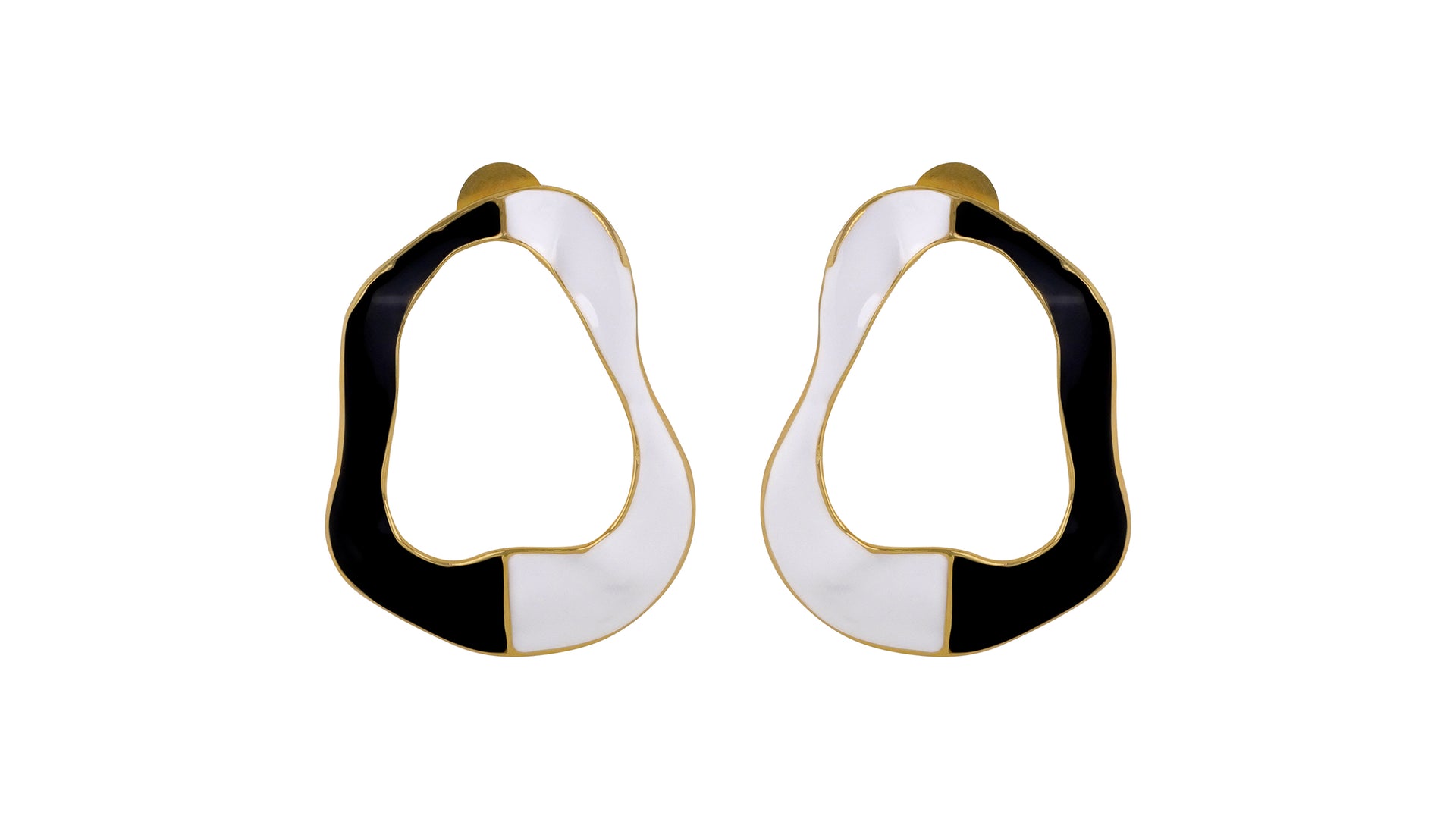Our Cascade earrings feature a modern design with a black and white enamel finish. Their fluid, teardrop shape and contrasting colors create a striking, sophisticated look. Wear yours as a set or mix and match with other styles from this enchanting collection.