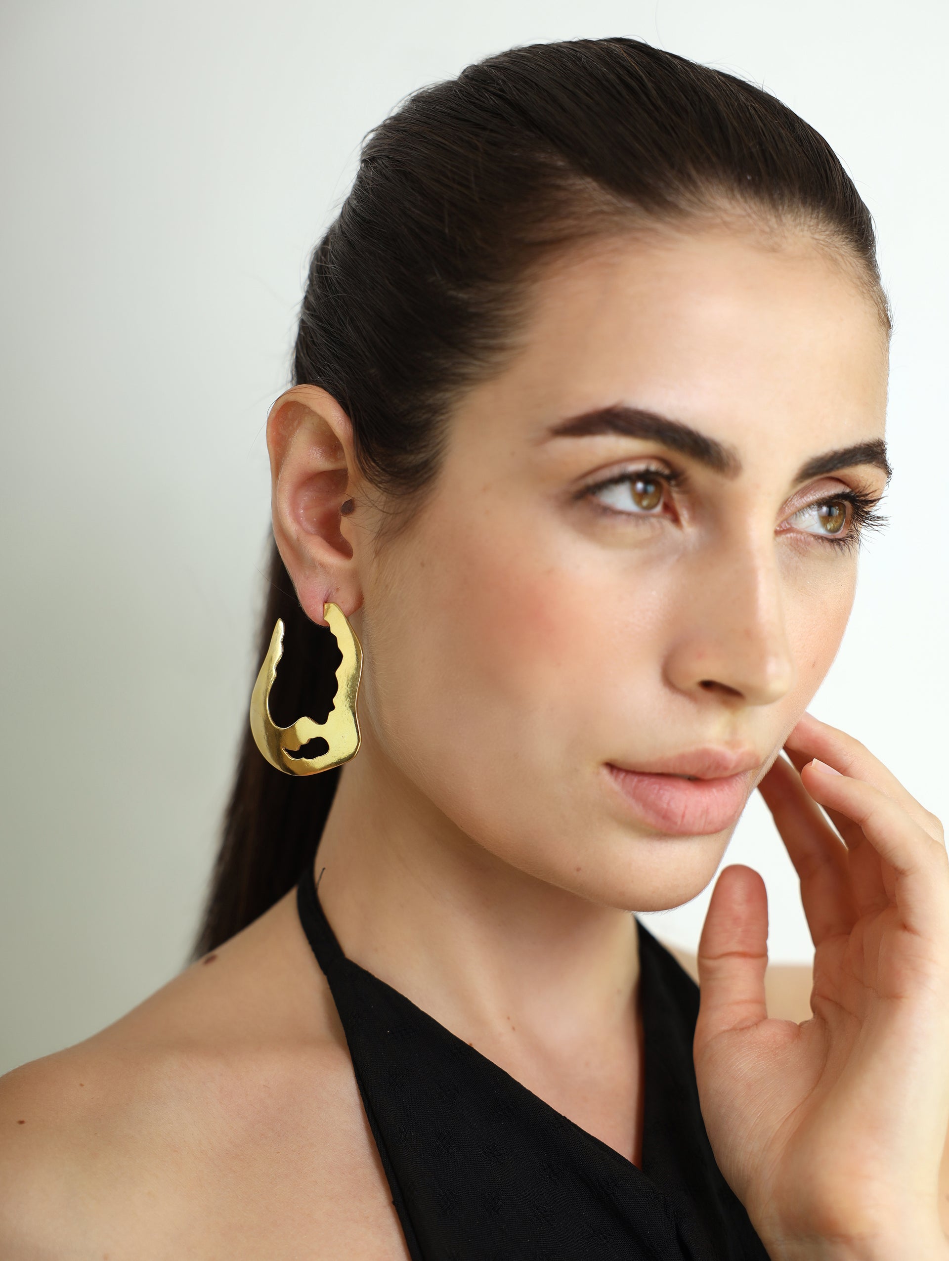 Our Nautica earrings are unique pieces crafted entirely from gold, featuring an abstract, wave-inspired design reminiscent of oceanic forms. With their stunning all-gold finish, these exquisite earrings bring a touch of refined glamour to any ensemble. Wear yours as a set or mix and match with other styles from this enchanting collection.