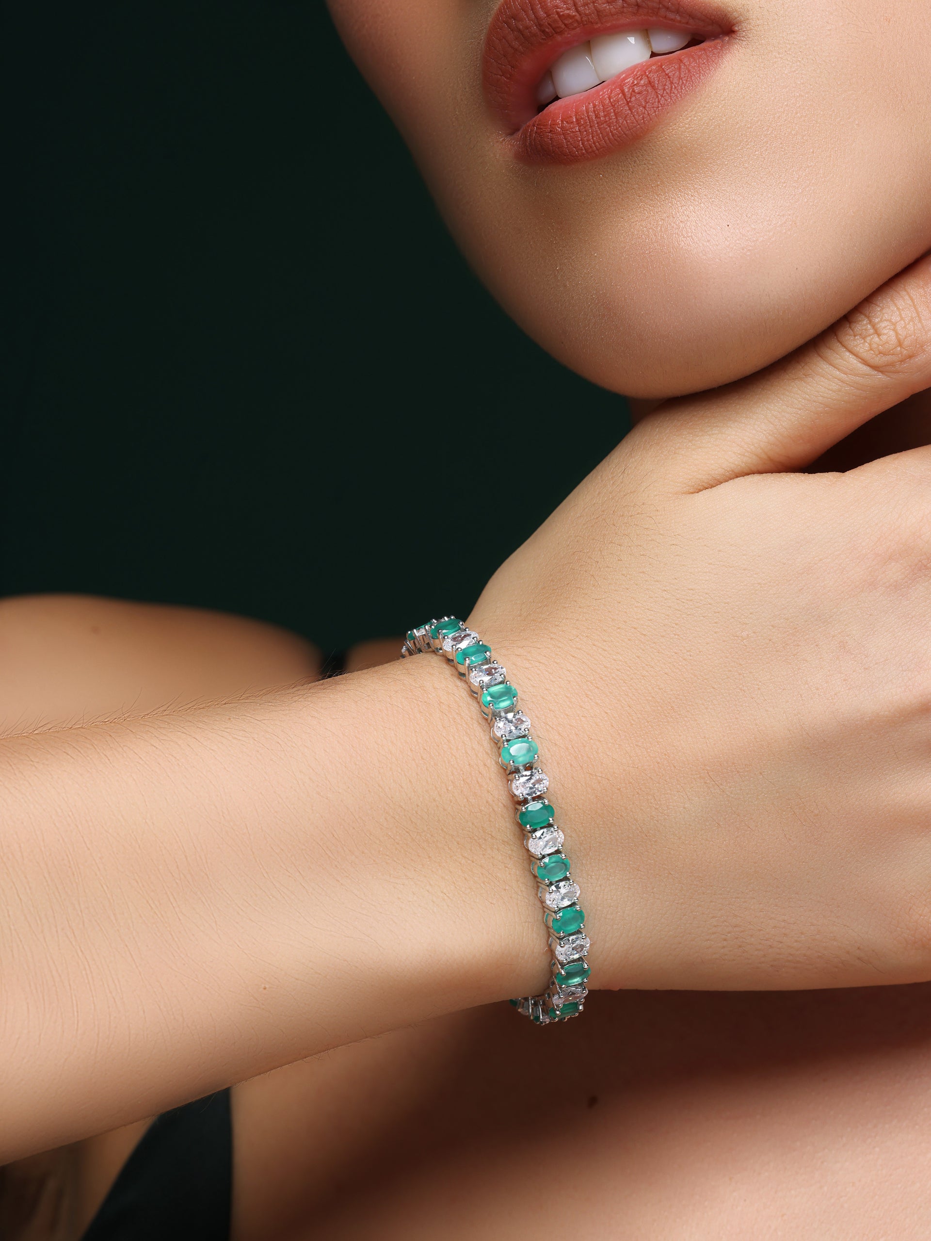 Dimensions : Stone Size: Oval CZ- 6x4mm, Oval Green Onyx- 6x4mm & Length- 6.75inches