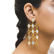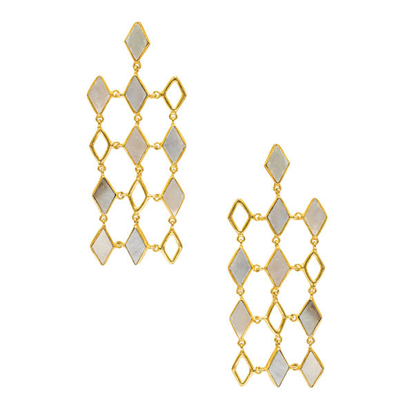 Gold plated earrings with Black Mop & white mop semiprecious stone. Handcrafted in India.