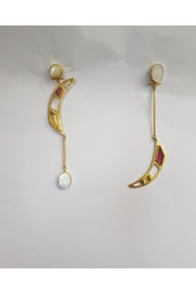 Gold Plated Earring With white MOP, pink Quartz & Citrine semiprecious stone. Handmade In India