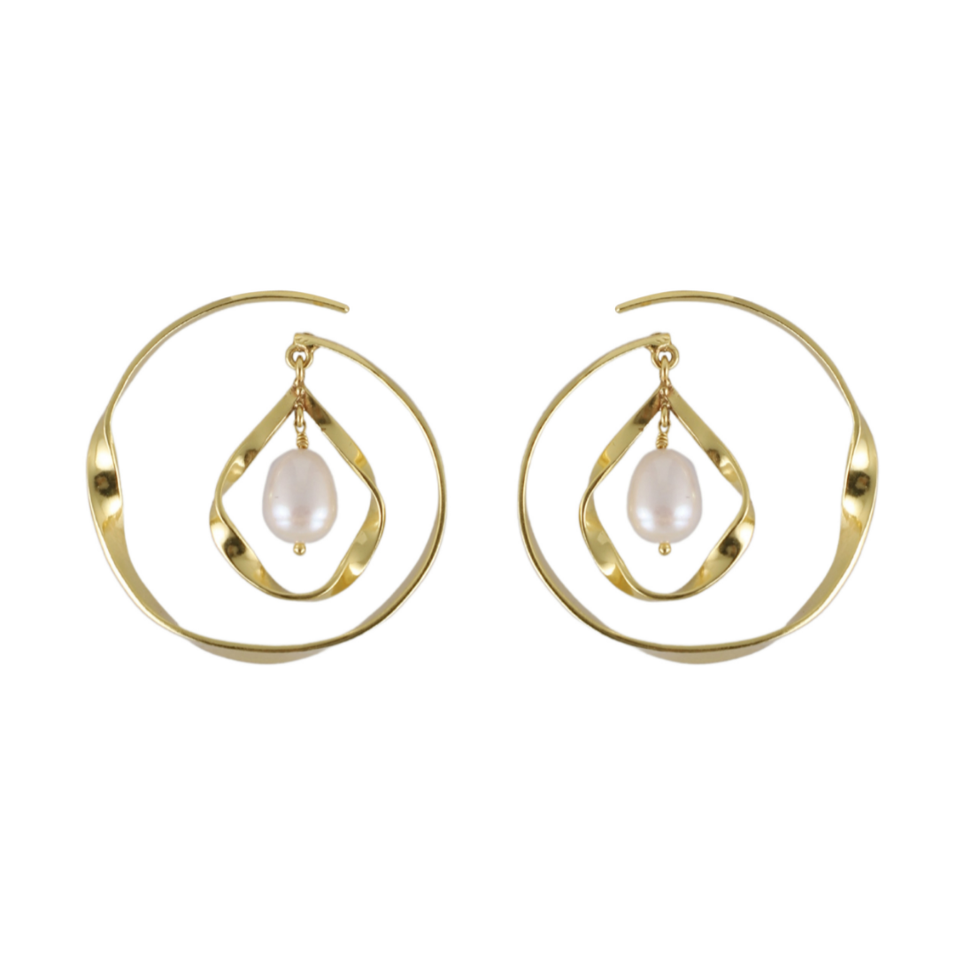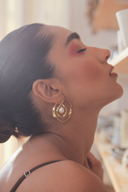 Finished in a brilliant 22K gold plating with customized metal alloy, our Calla Earrings reveal a unique silhouette inspired by natural folds with a pearl drop in the middle. Adorn it as a statement piece or pair it with other pieces of this enchanting collection.