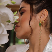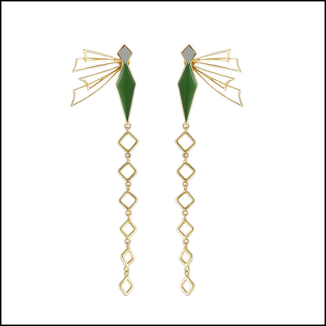 Our Eleanor earrings is made up of 22k gold plating using White MOP and green enamel